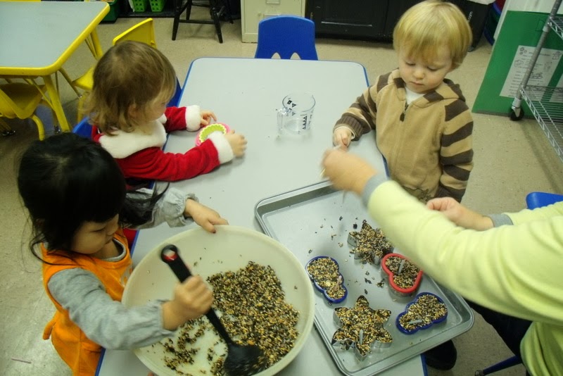 We finished up the month of January making birdseed ornaments to hang outside for our feathered friends.